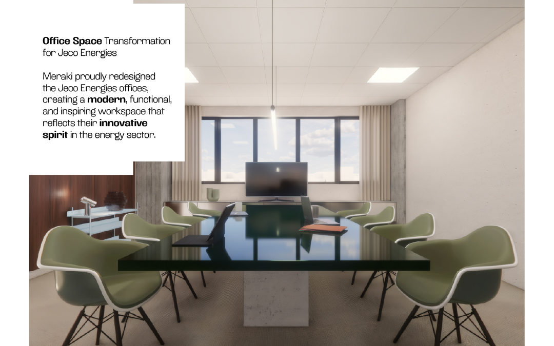 Meraki proudly unveils the redesigned offices of Jeco Energy in Olen. The ambition behind the project was clear: to create a modern, functional, and inspiring workspace that embodies Jeco Energy’s innovative spirit in the energy sector.